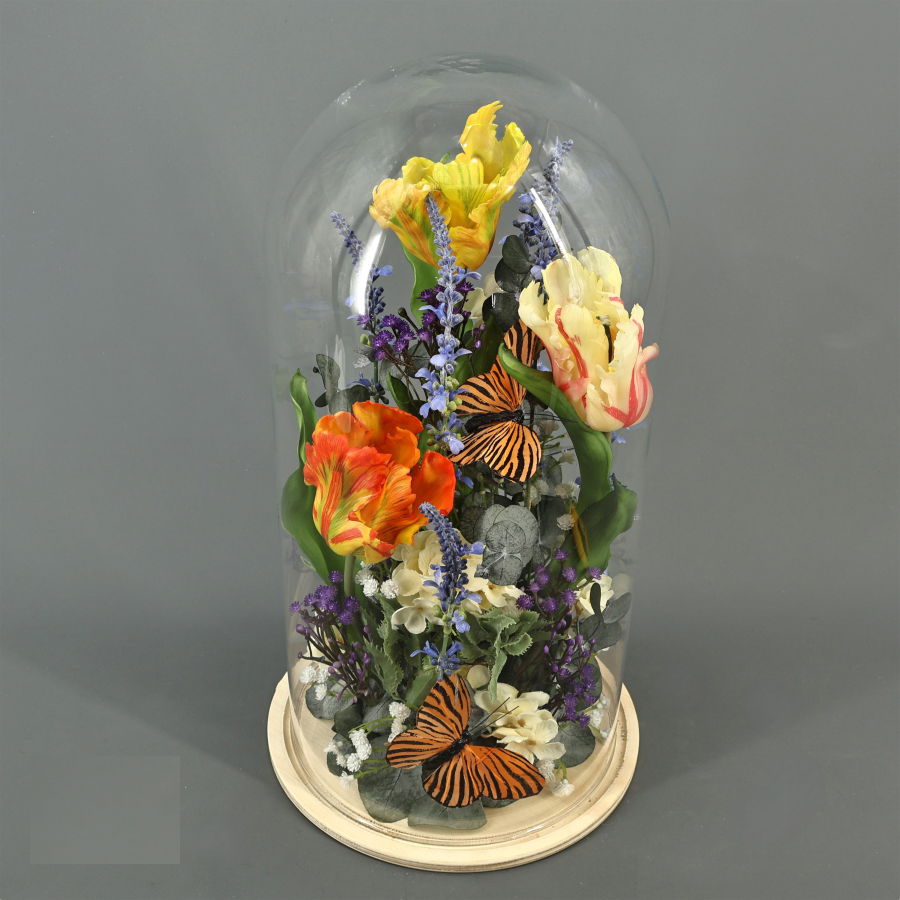 Cúpula flor artificial y mariposas.