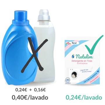 Natulim contiene ingredientes adicionales que dejan la ropa suave sin dañarla. Ahórrate el dinero (y la botella) de suavizante!
