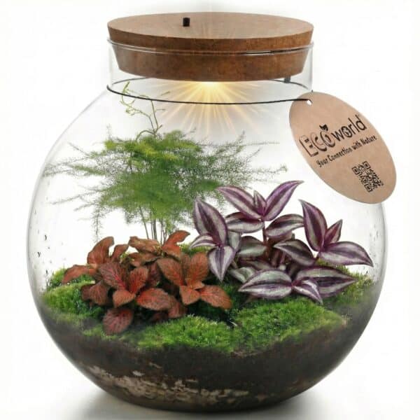 Tu kit de terrario DIY incluye todo lo necesario para empezar de inmediato: el terrario, un tapón de corcho con iluminación LED, una selección de mini plantas, sustrato, pastillas de fibra de coco, musgo decorativo y unas instrucciones fáciles de seguir. Todo ello empaquetado en materiales respetuosos con el medio ambiente. Prepárate para recibir un envío ecológico tan consciente como el maravilloso ecosistema que vas a crear.